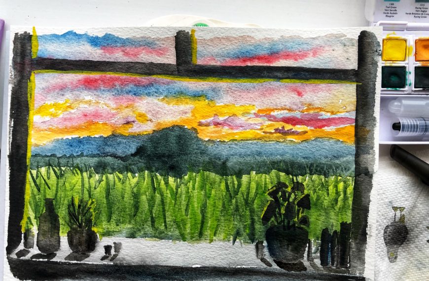 The sun sets after 10pm right now and it’s light out well into the night at the moment. Along with that, we also get some spectacular sunsets from our perch here on the farm. I’ve started to do some watercolor painting while standing at the kitchen counter, trying to chase the changing colors of the … Continue reading Sunsets in the dark